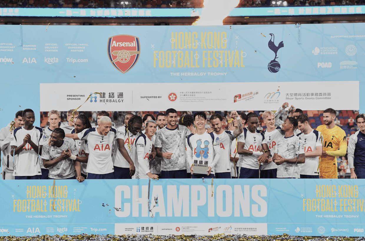 [香港,2025年7月31日]:周四晚的香港足球盛会再创历史!首场在海外举行的北伦敦德比在启德主场馆上演,热刺凭借中场柏沙亚一记超远程笠射得手、以1:0击败宿敌阿仙奴,在全场49,975名球迷见证下捧走“健络通杯”,缔造本地体育史上现场观战最高人数的新纪录。